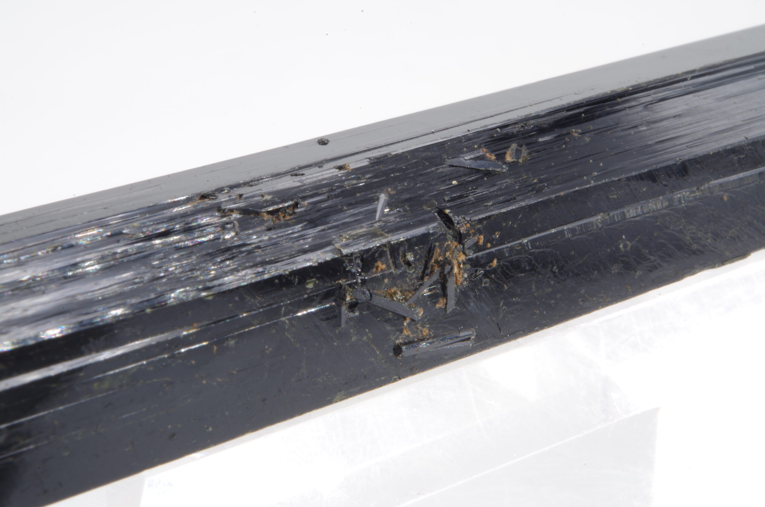 8.7×1.7×1.2cm 35gSpécimen massif d’Aegirine noir, brillant et très bien formé avec de jolies terminaisons.