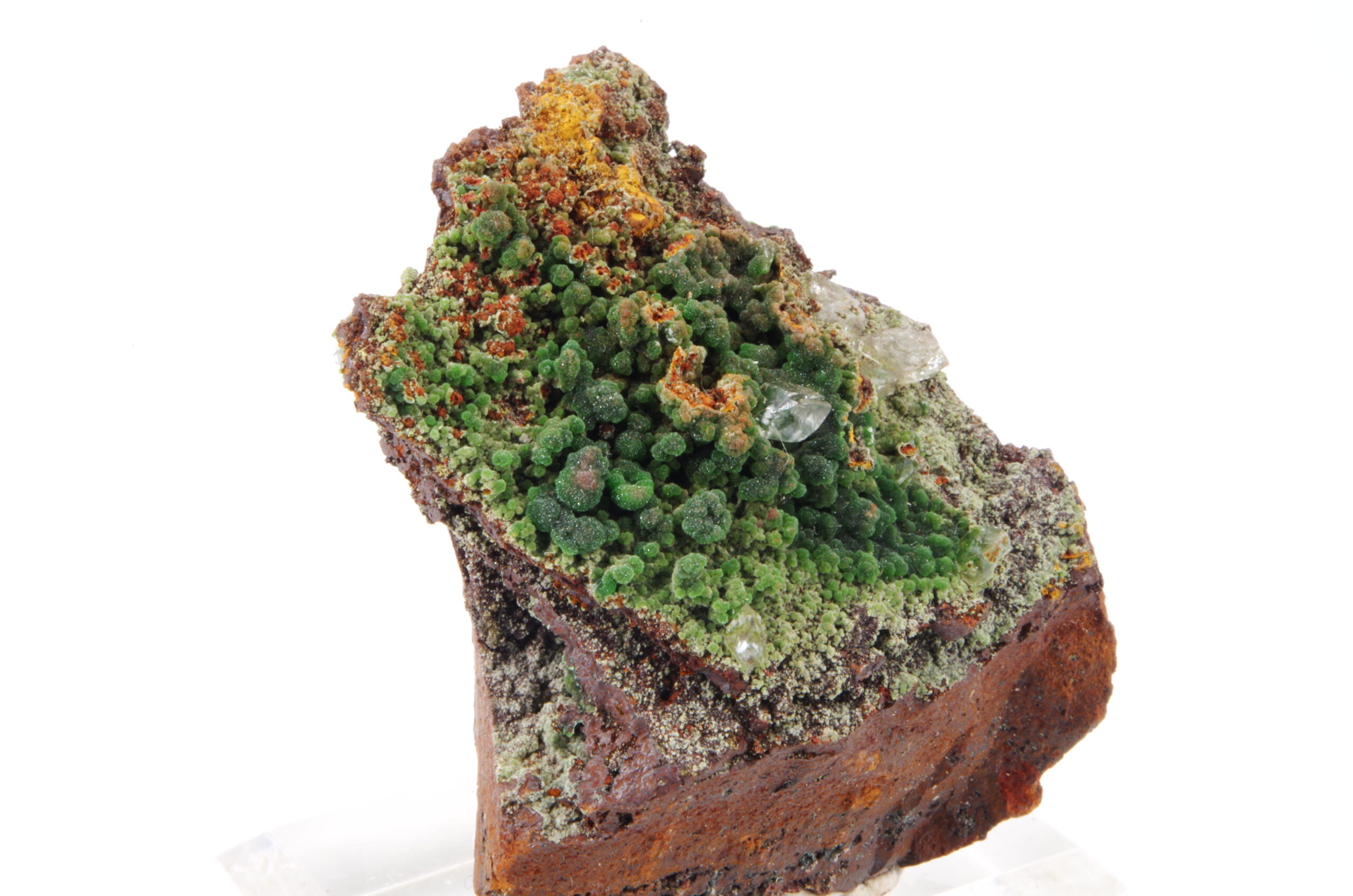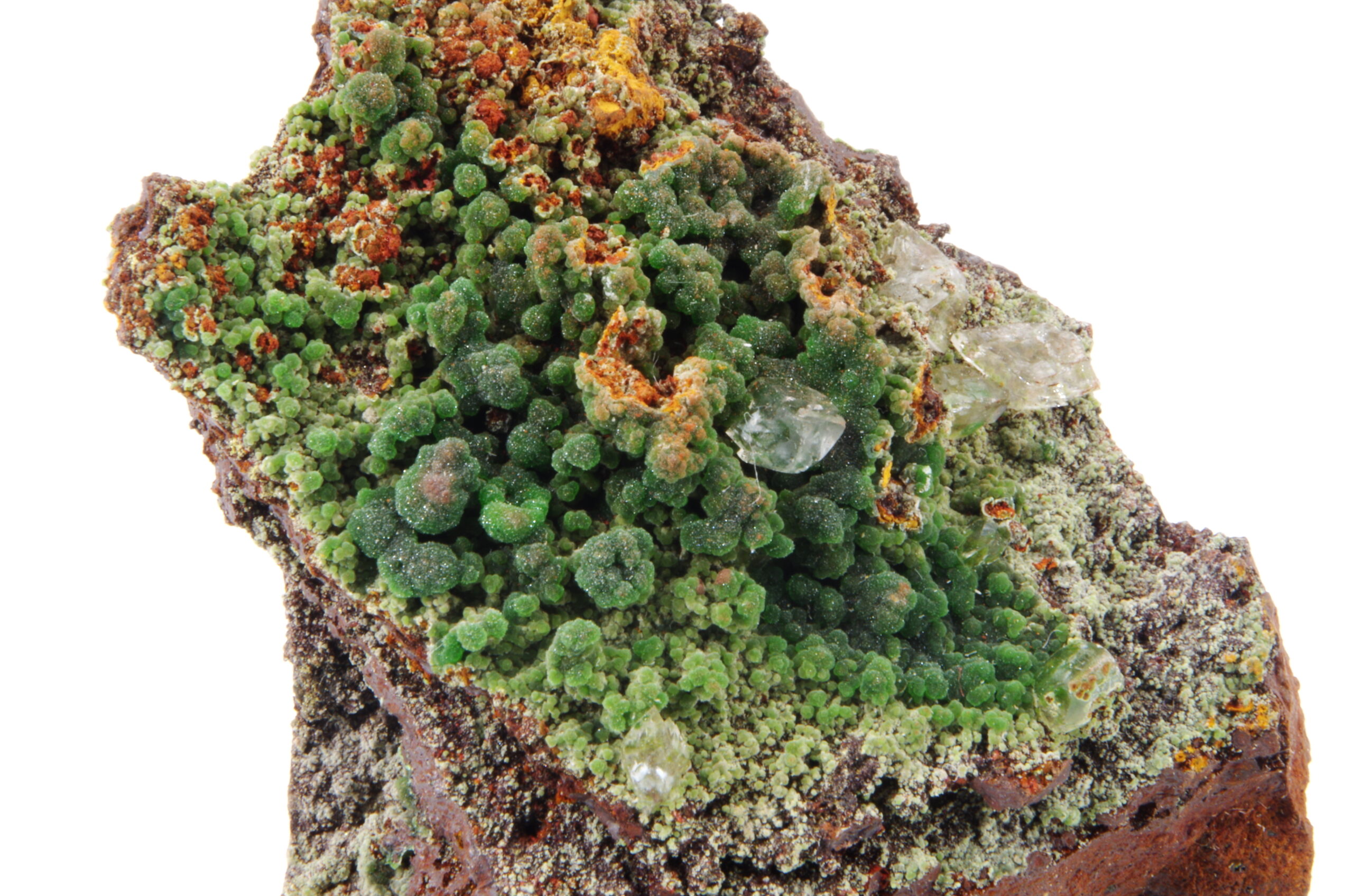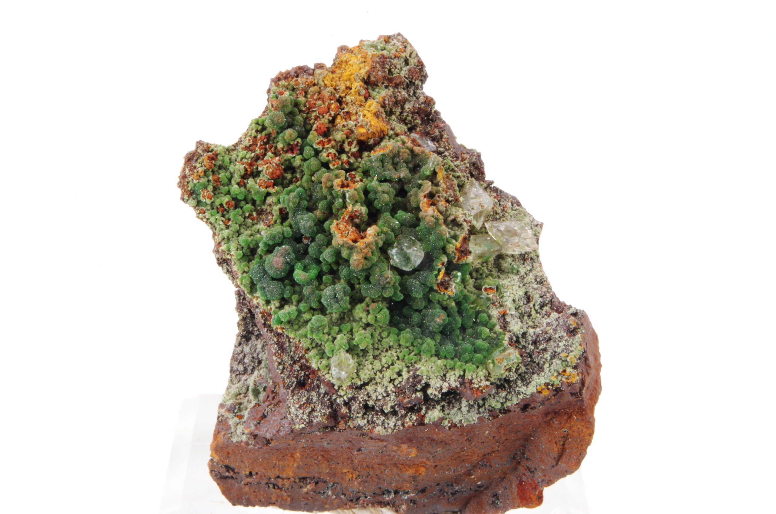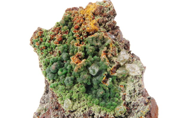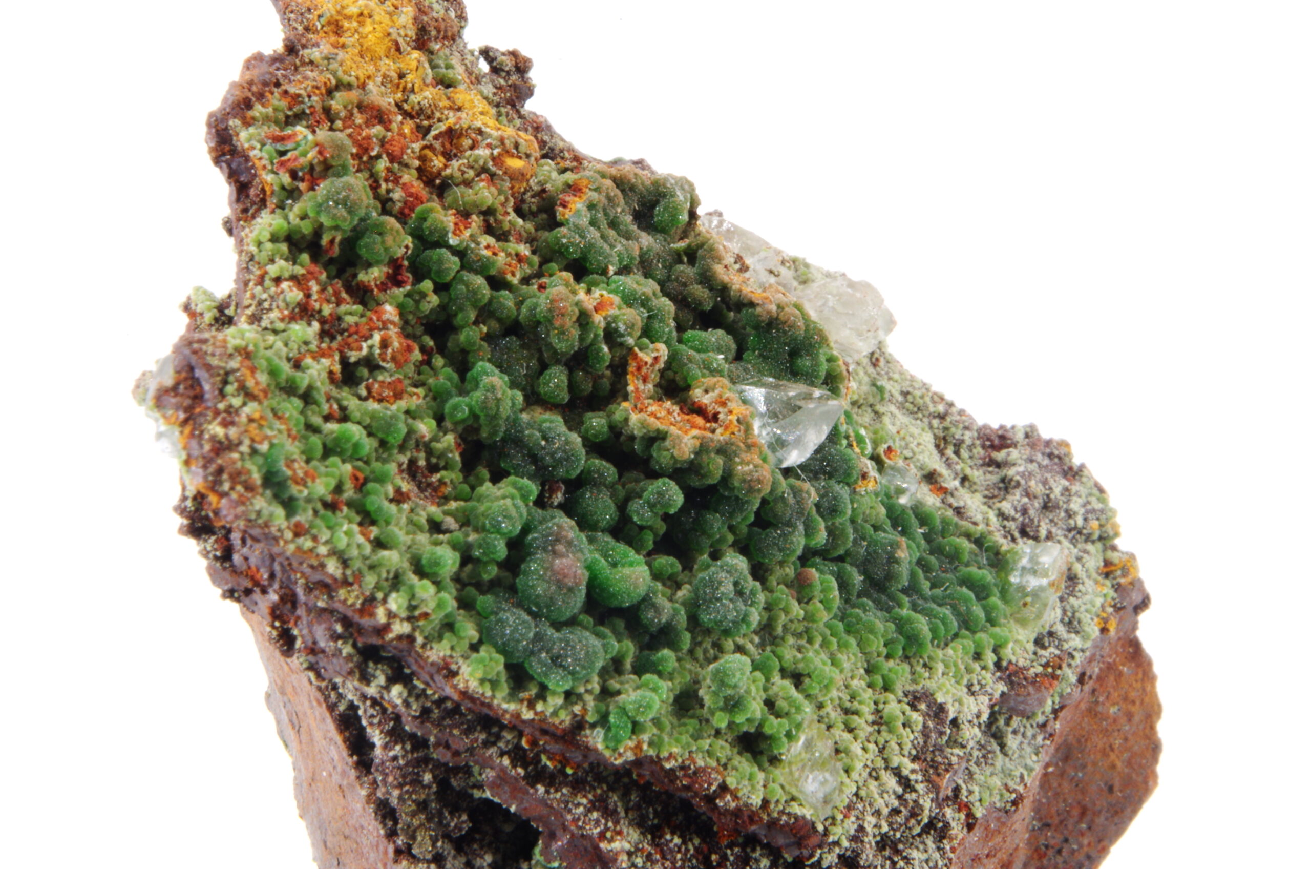Jolie Conichalcite et Calcite translucide sur matrice en Limonite.