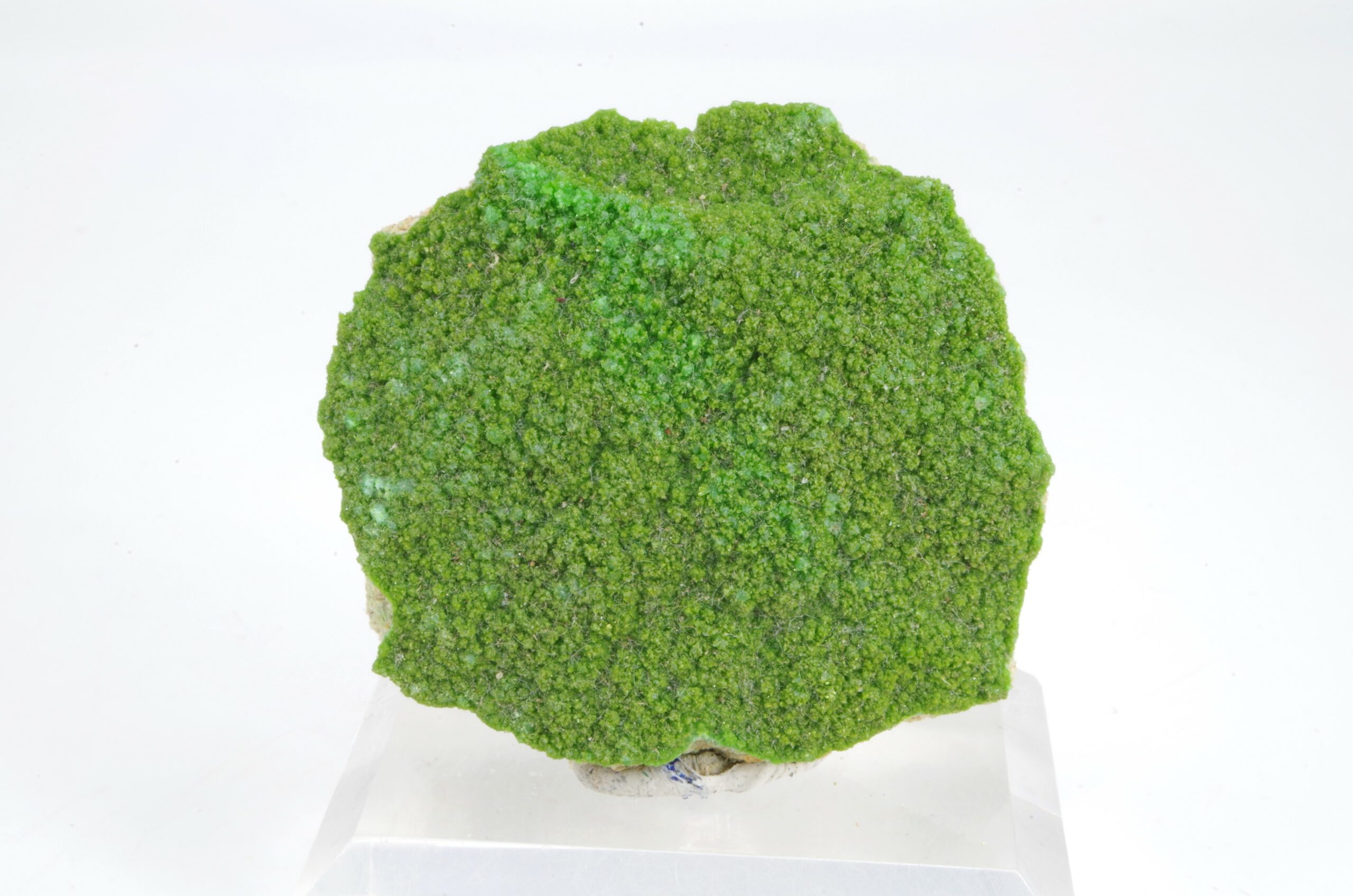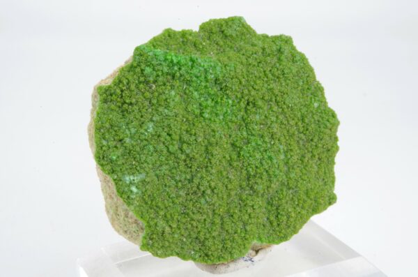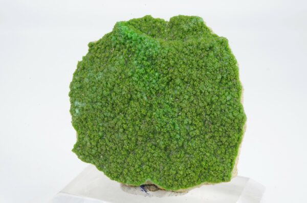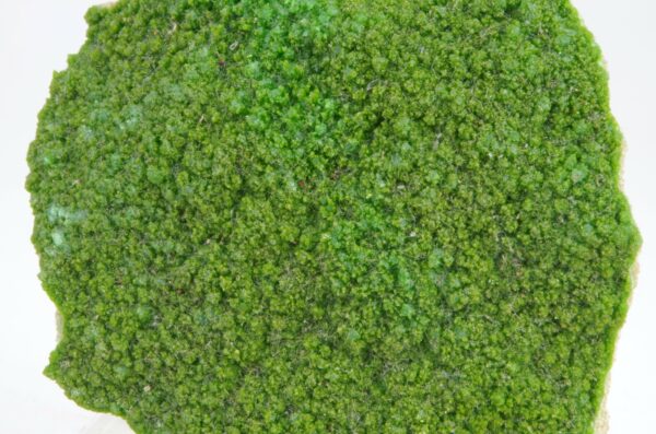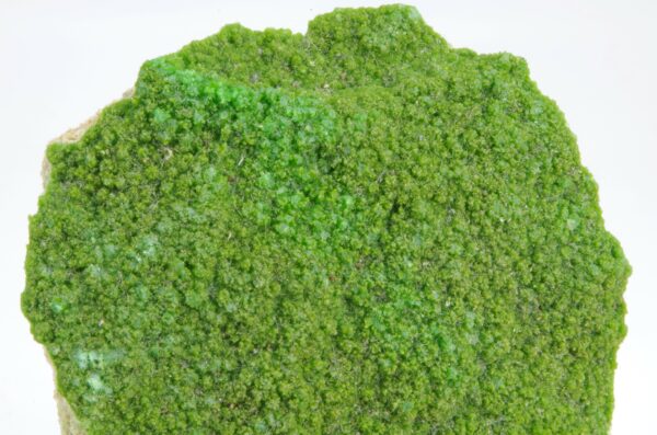 Fine cristallisation de Pyromorphite verte tapissée sur une fine gangue.