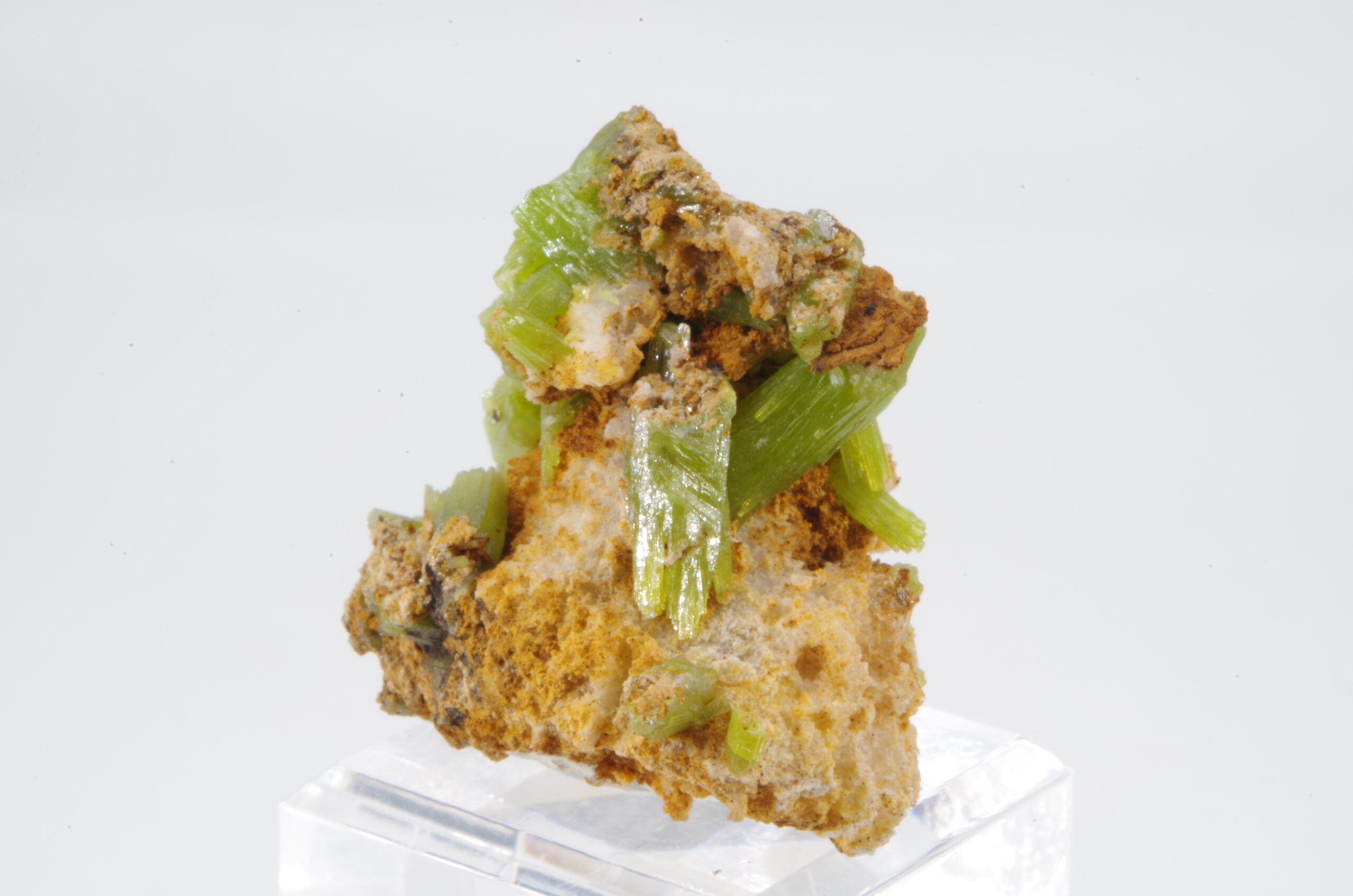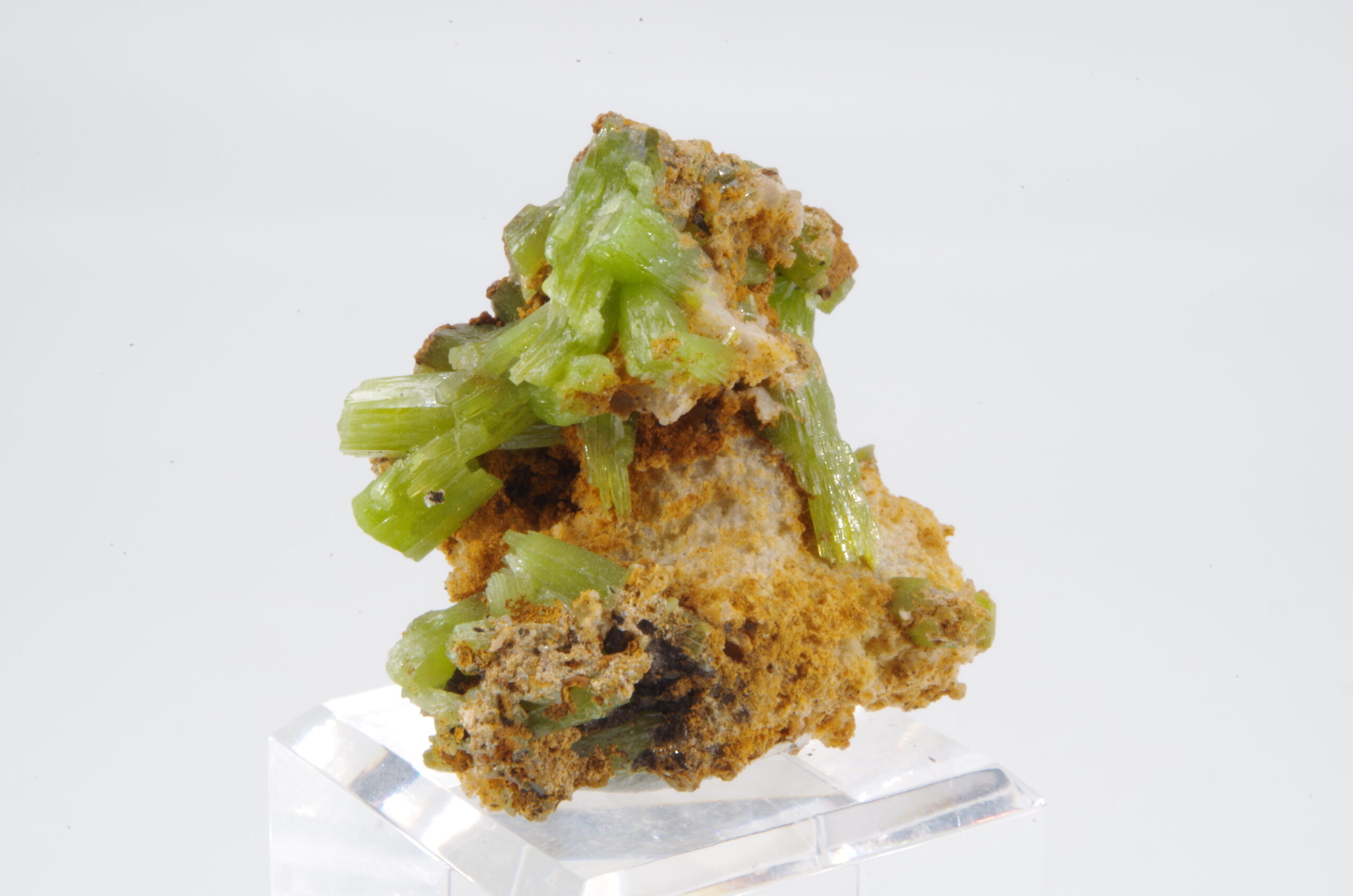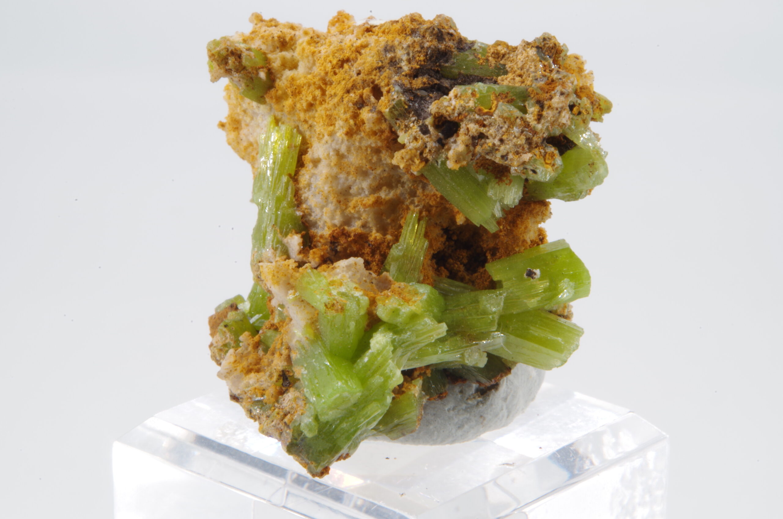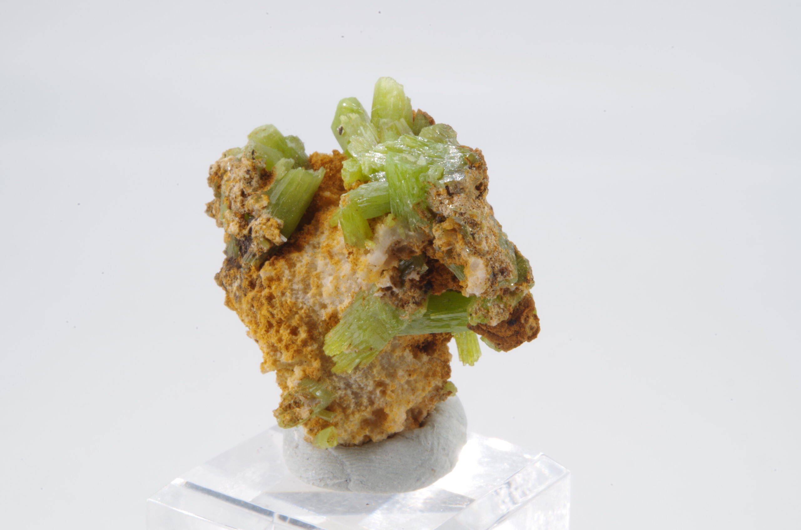 Jolie cristallisation de Pyromorphite vert pale sur matrice.