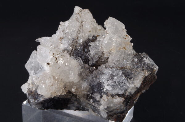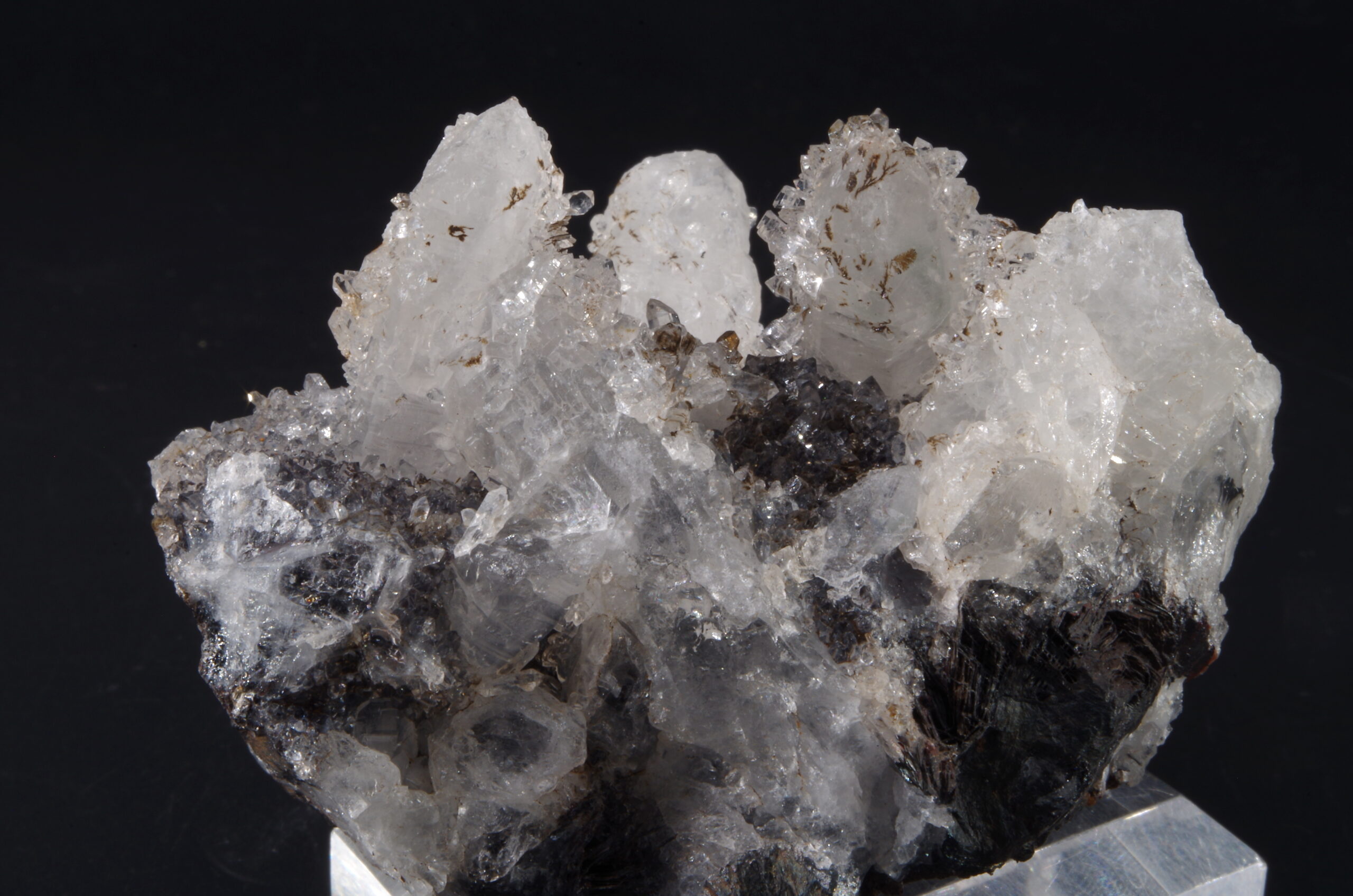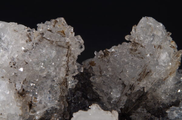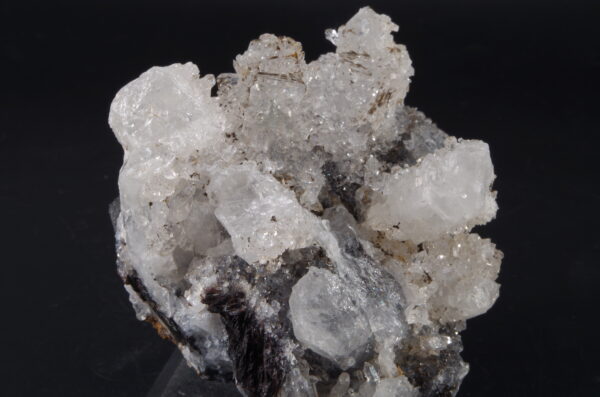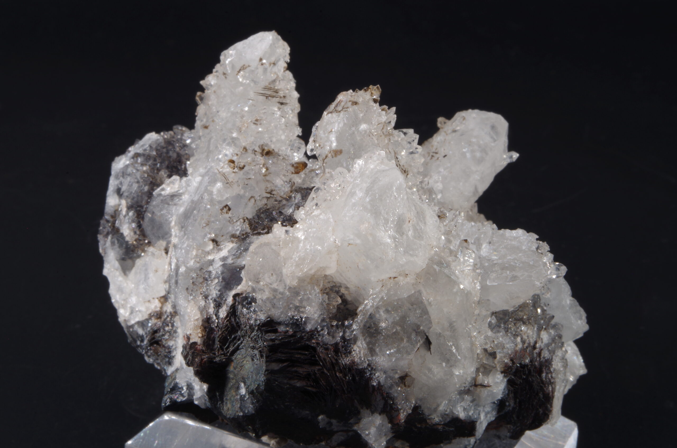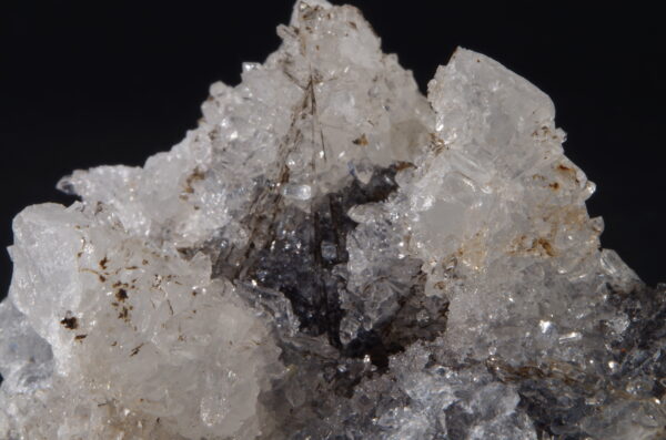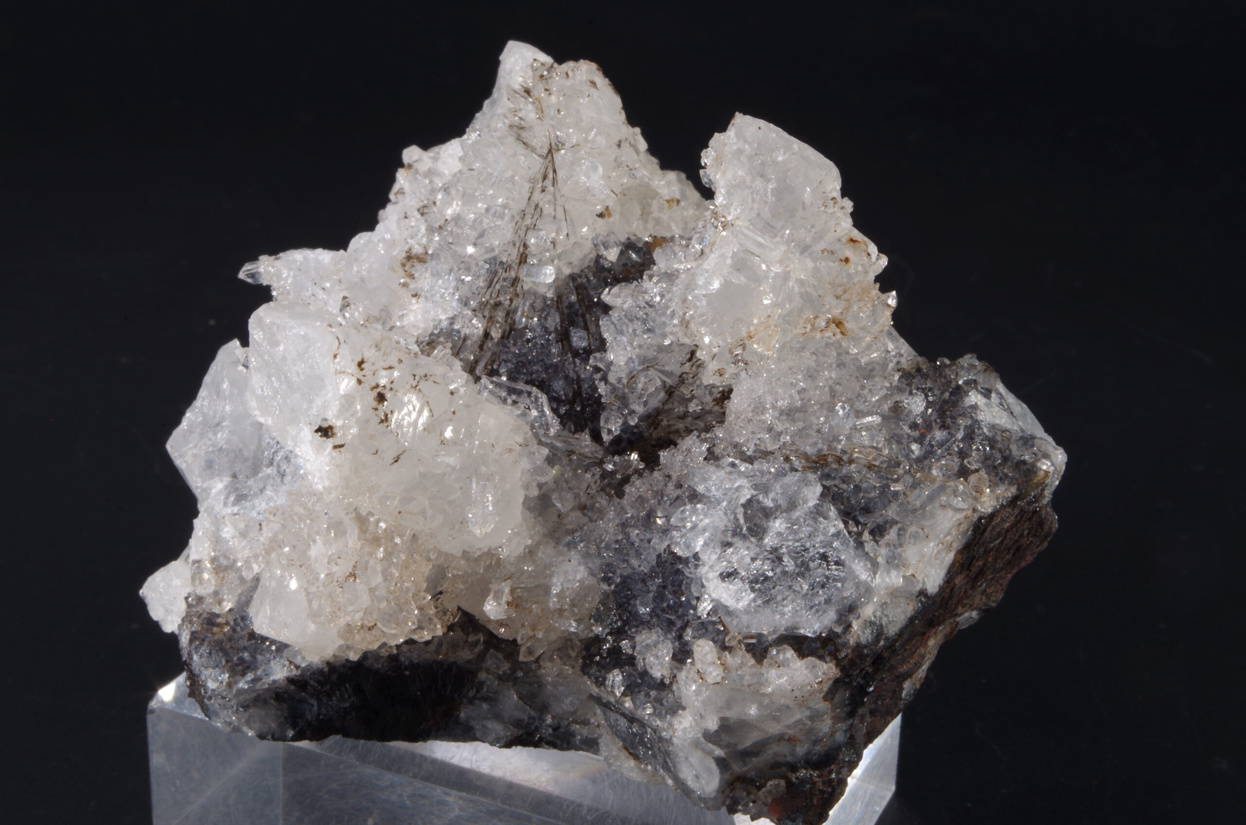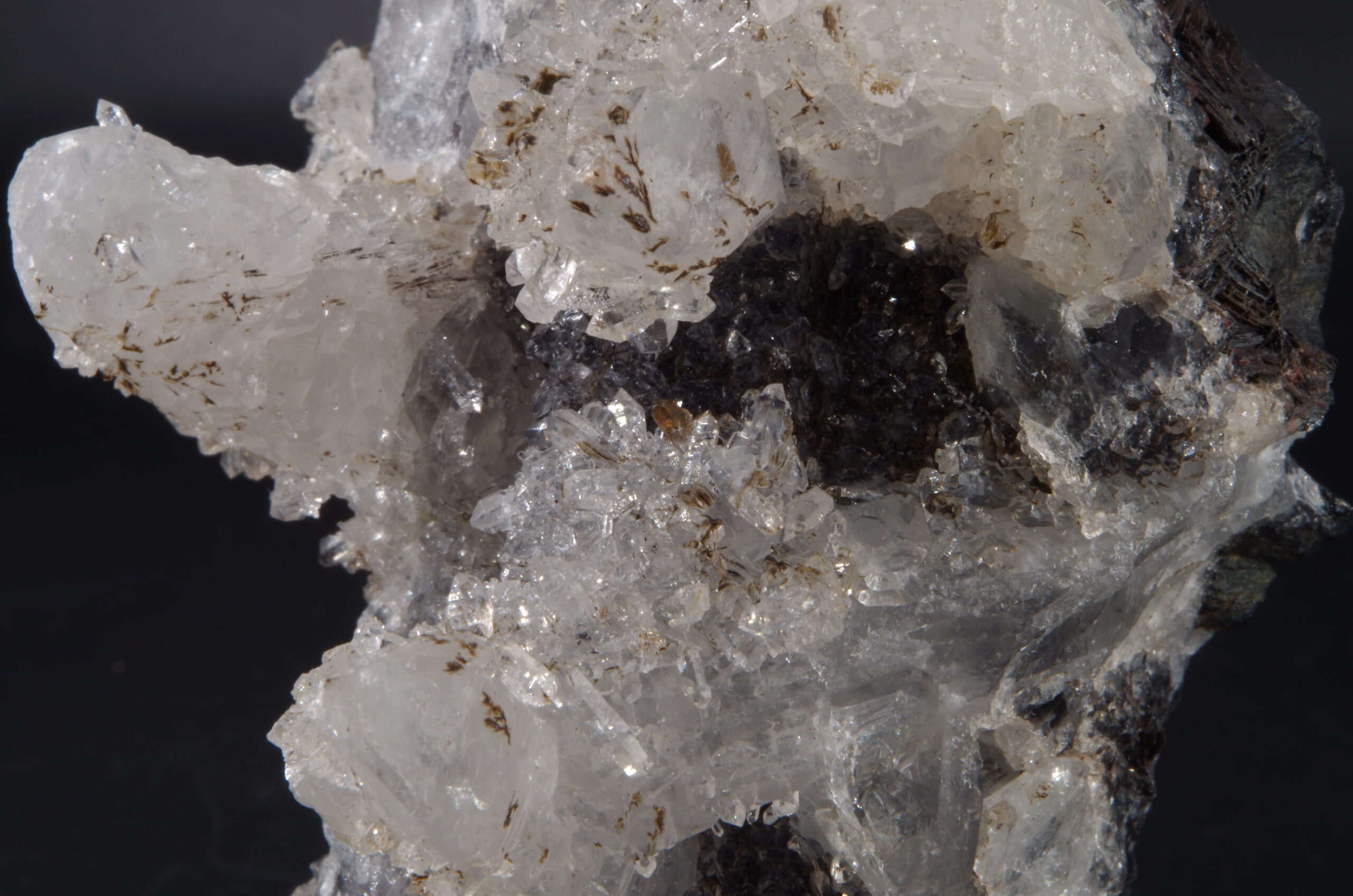 Jolie druse de Quartz blanc recristallisé avec Hématite sur la gangue et en inclusion.