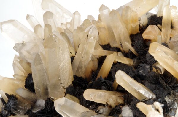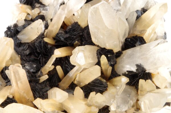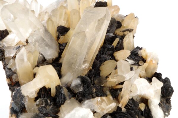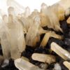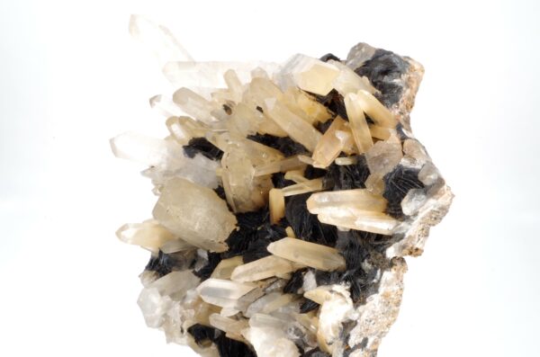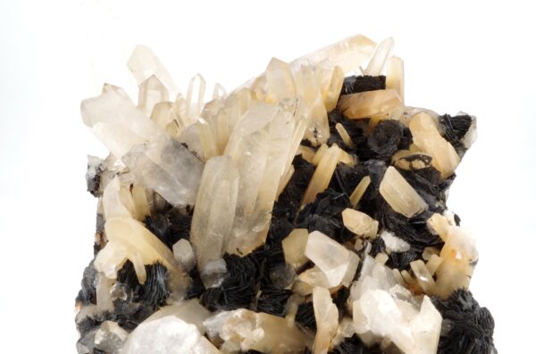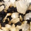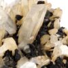 Superbe amalgame de Quartz blanc translucide et légèrement orangé pour la plupart parsemé de rosettes d’Hématite variété Spécularite.