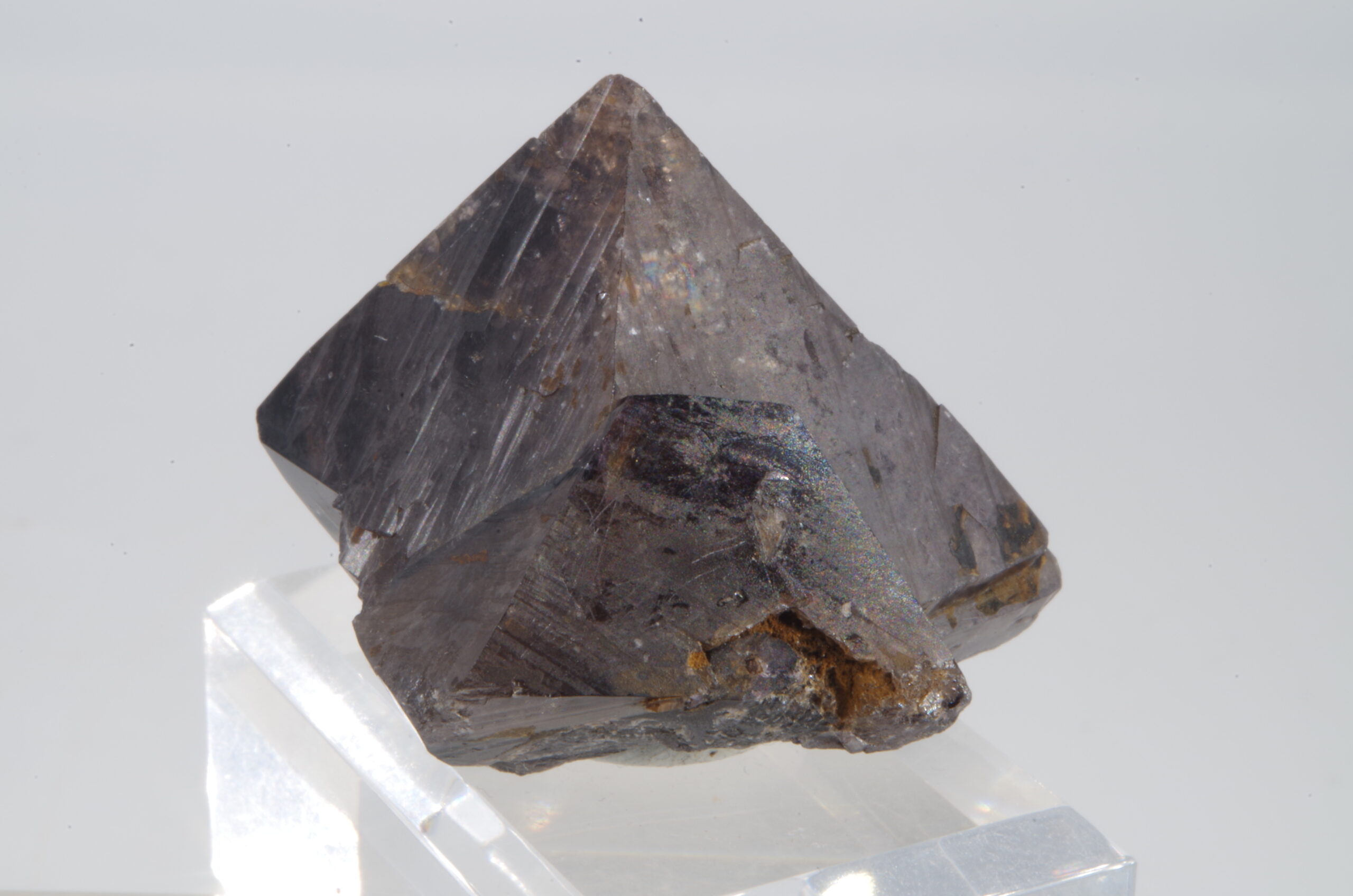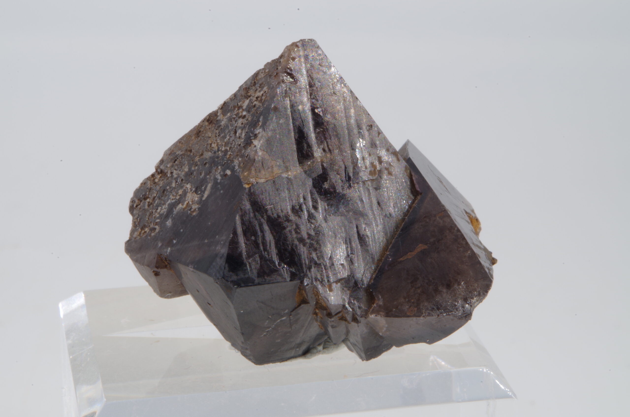 Excellent spécimen flottant de Scheelite brune légèrement translucide montrant une belle forme tétragonale bipyramidale, avec des faces lisses et un bel éclat.