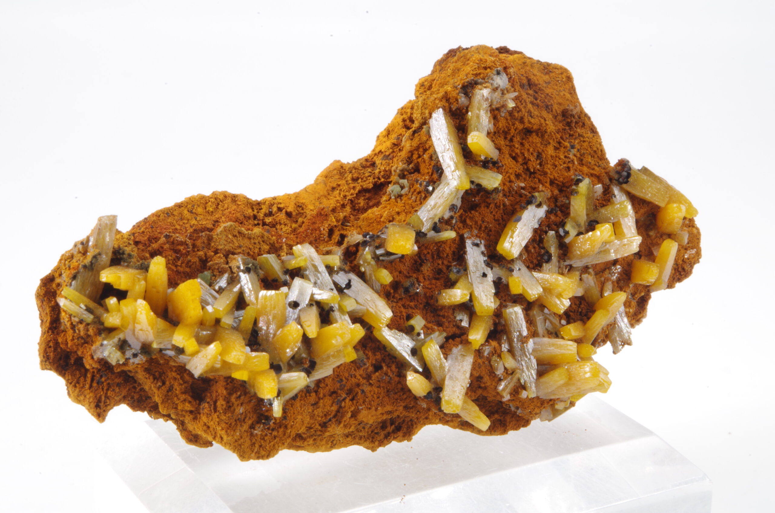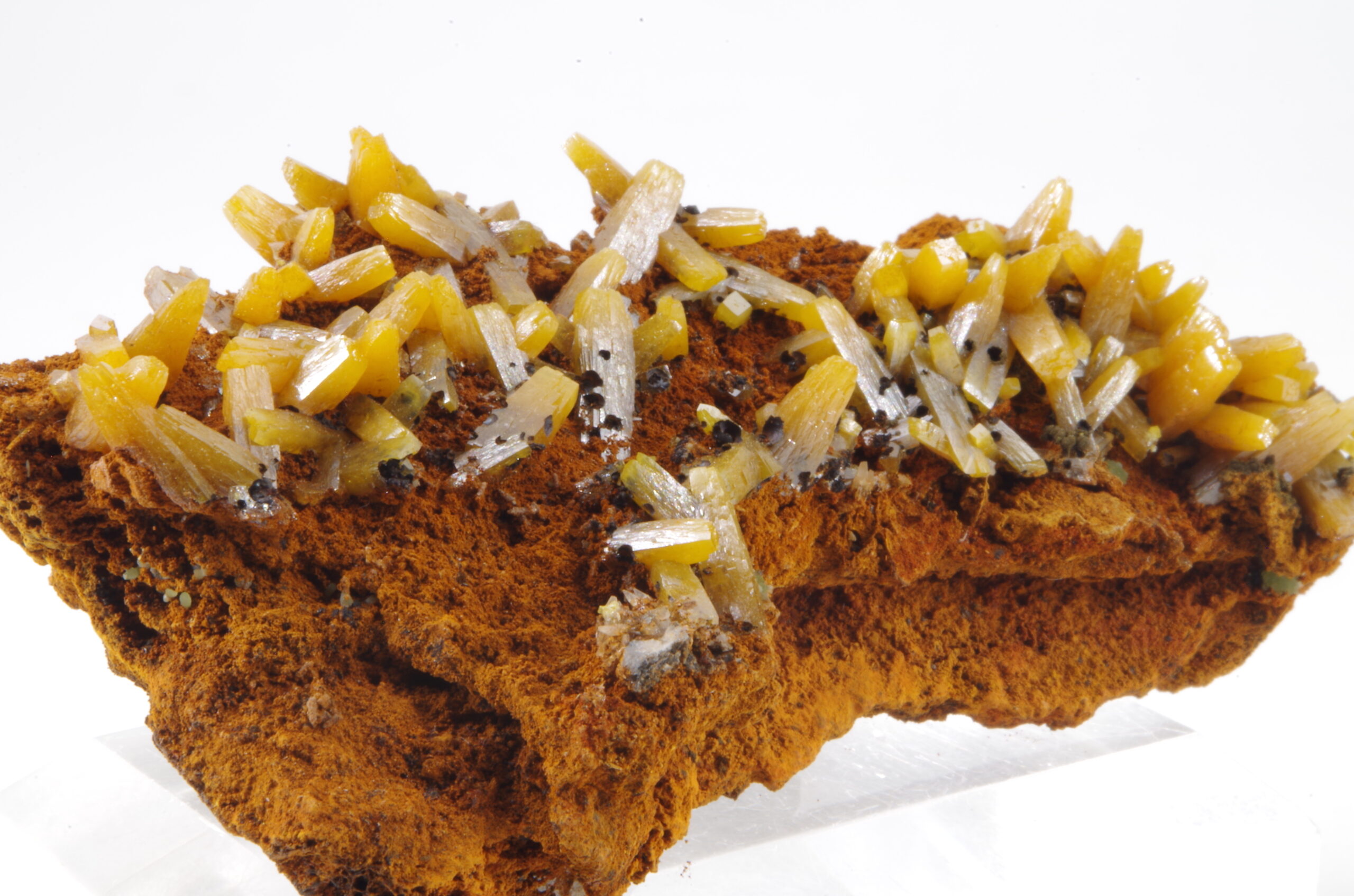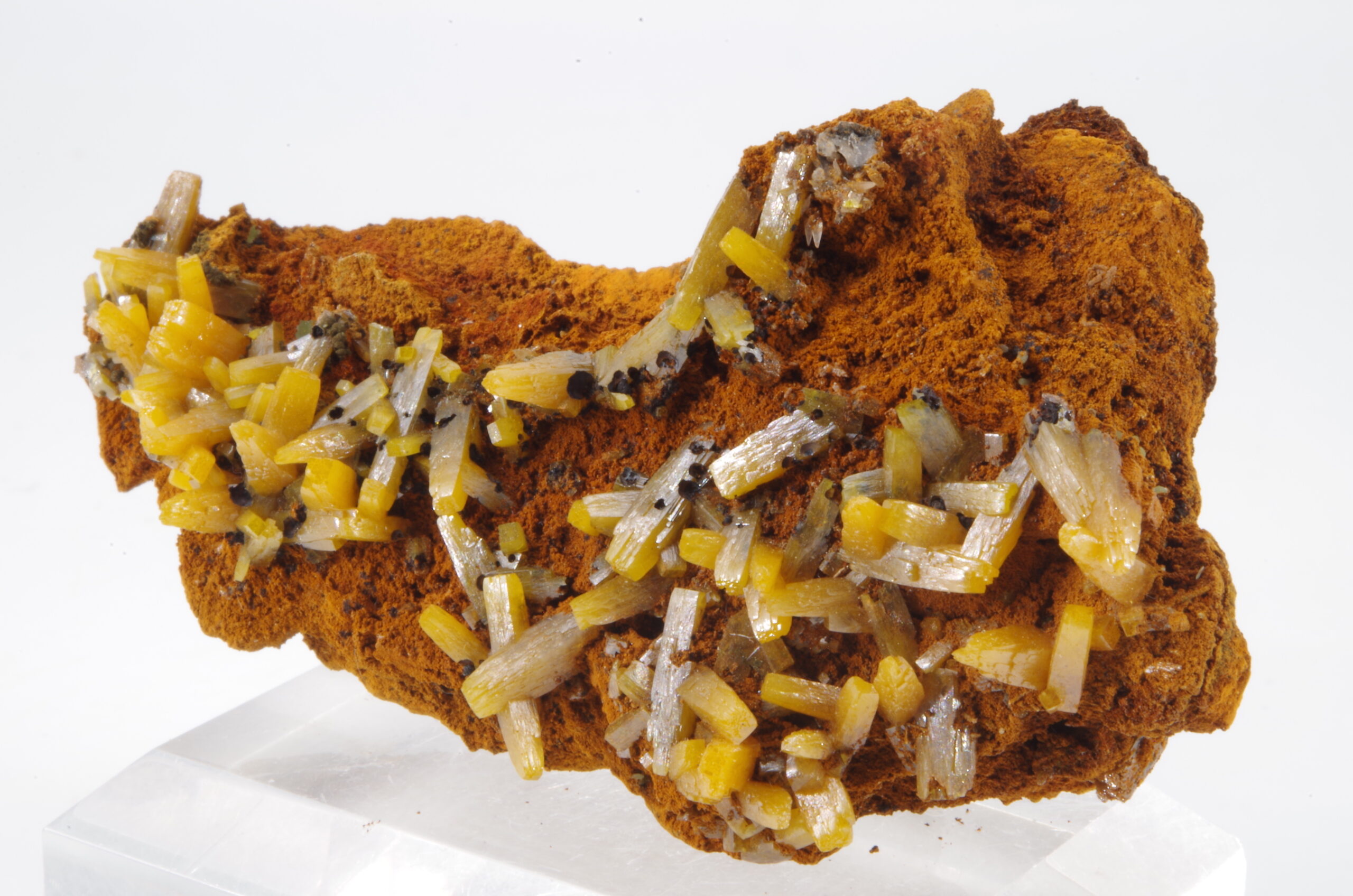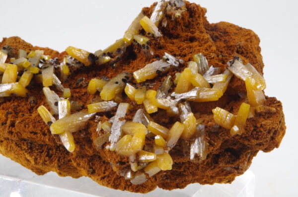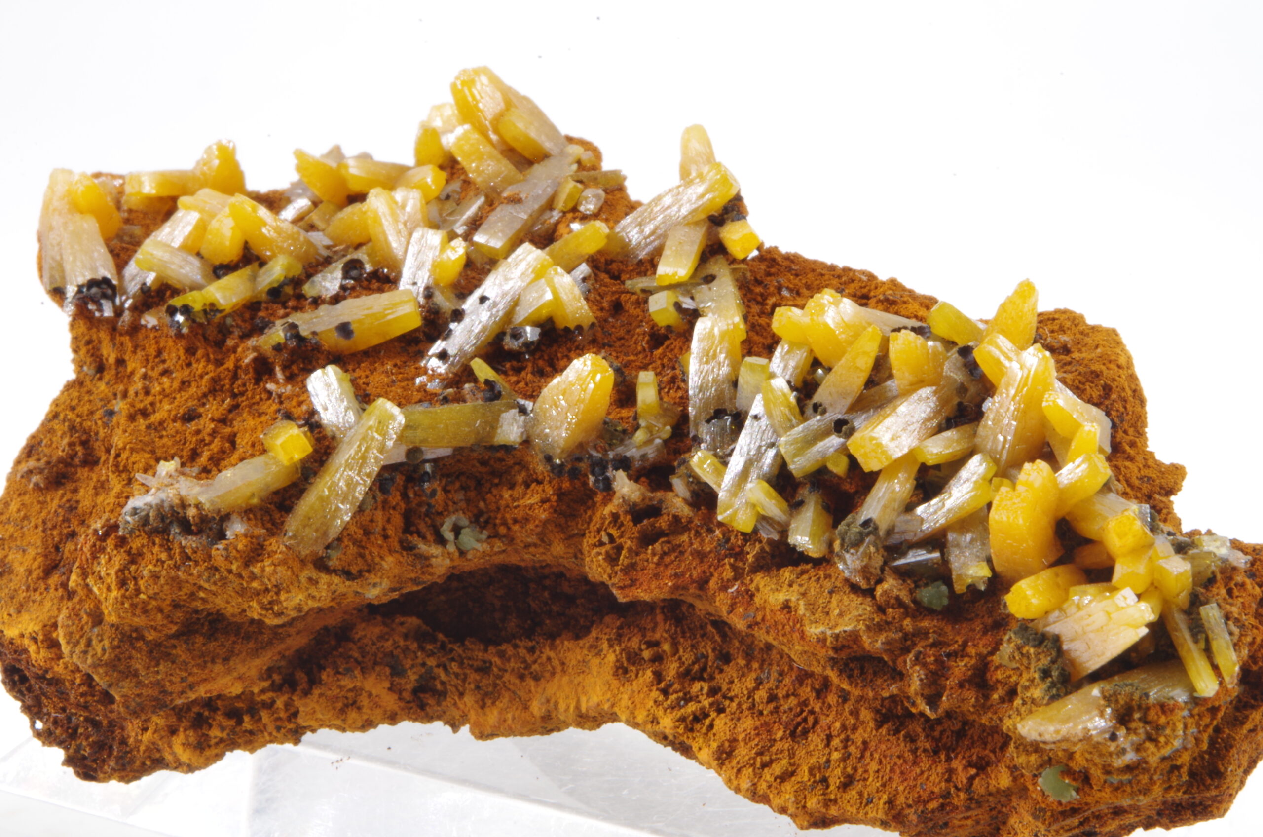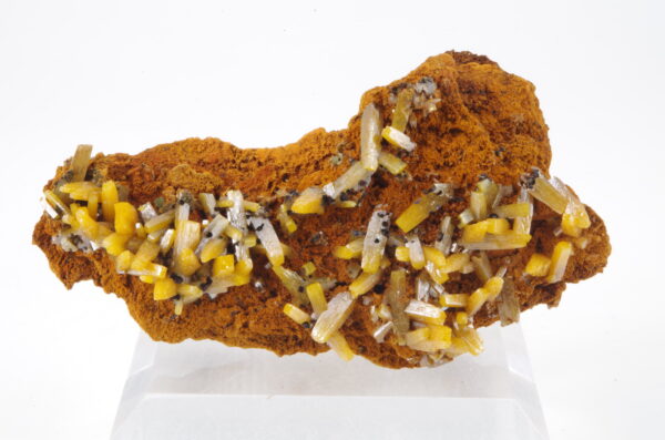 Superbe spécimen de Wulfénite orangé parcourant une matrice limoniteuse